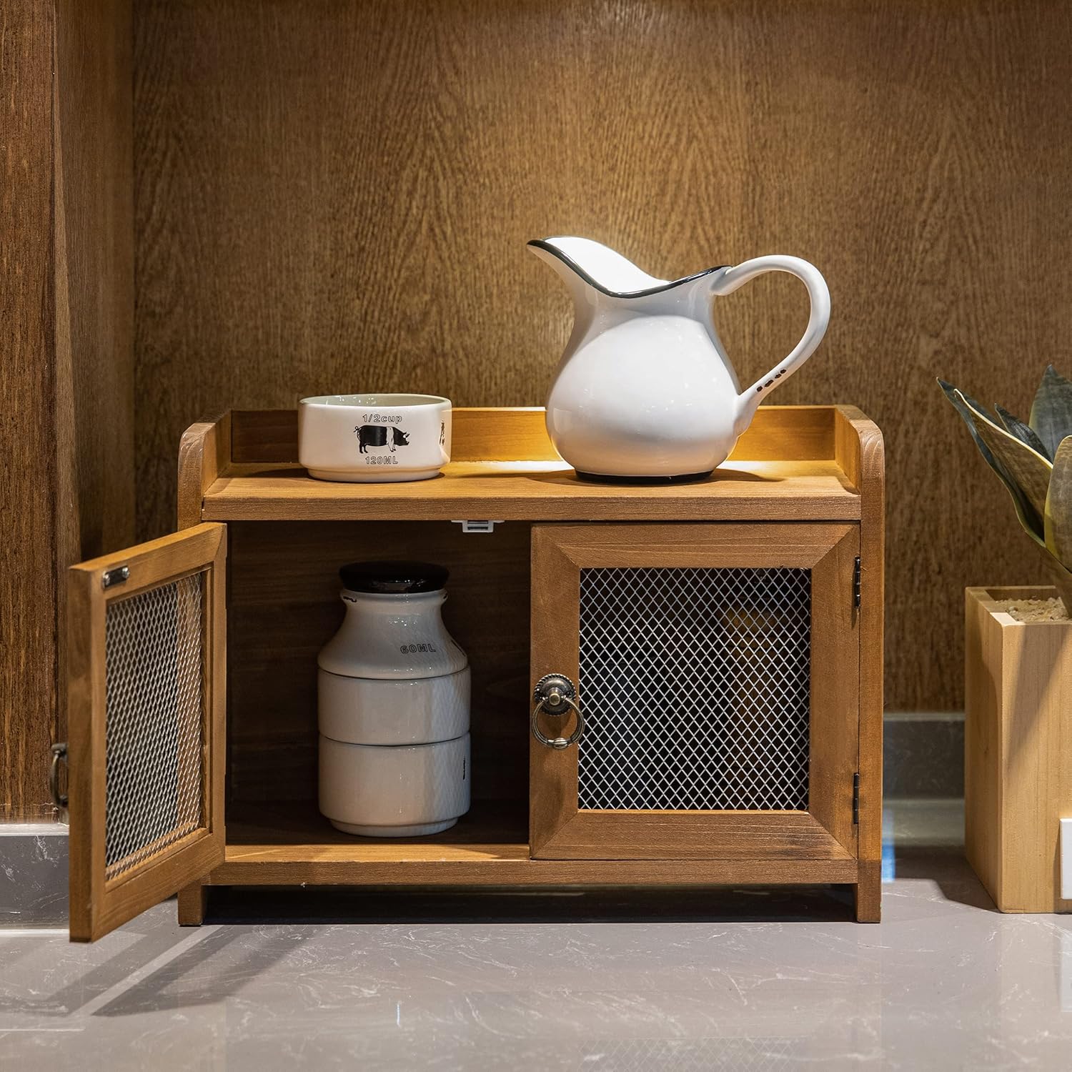Introducing the COLLECTIVE HOME Storage Cabinet, the perfect solution for keeping your countertops organized and clutter-free. This mini countertop cabinet is crafted from durable wood and features a sleek brown finish that will complement any decor.