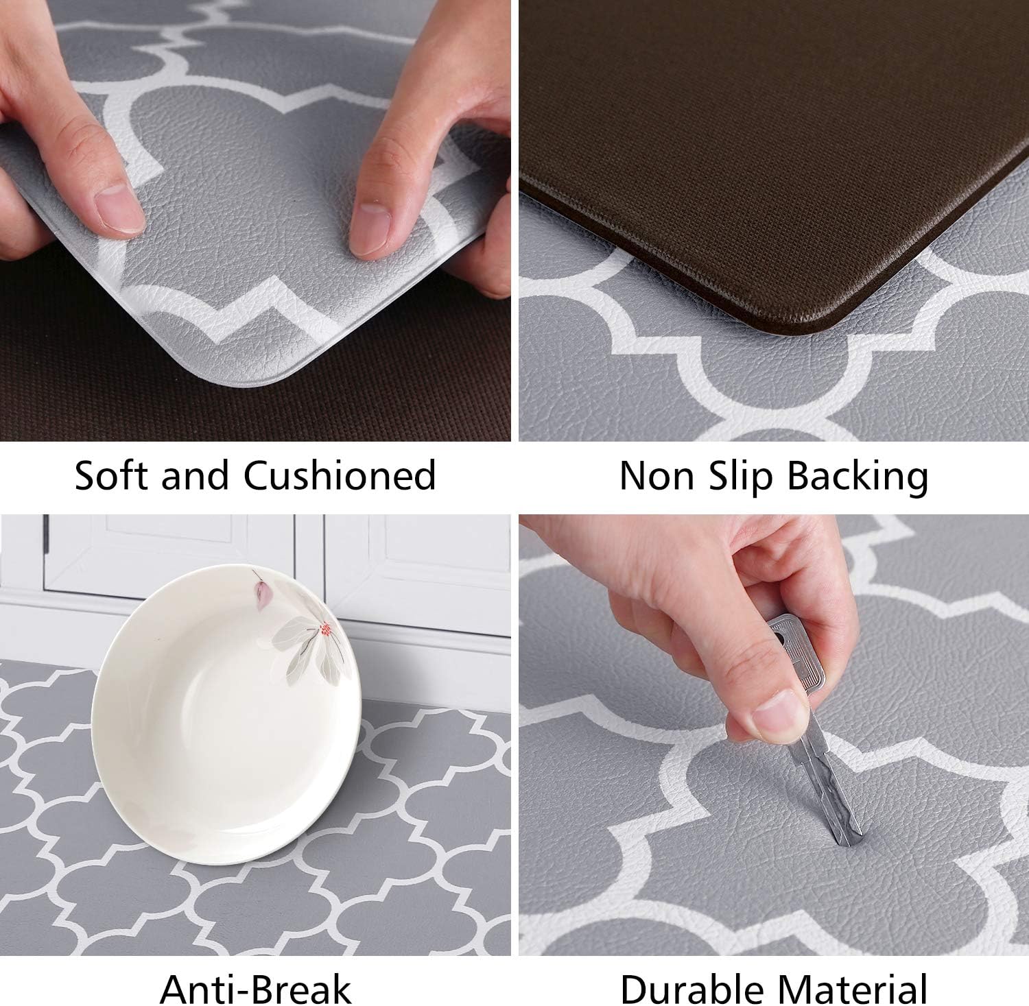 The KMAT Kitchen Mats feature a stylish grey color that will complement any decor, and their durable construction ensures long-lasting use. The non-slip backing keeps the mats securely in place, while the cushioned design helps reduce fatigue and strain on your feet, legs, and back.